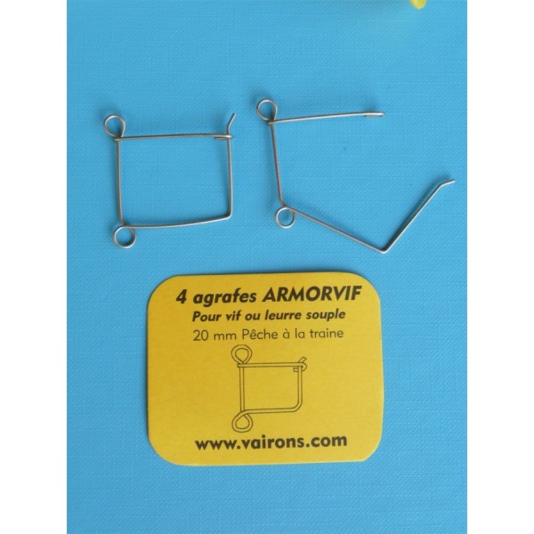 4 agrafes 20 mm double oeillets pour la pêche en drop shot ou à la traîne avec un vif ou un leurre souple. Fixer votre corps de ligne sur l'anneau du haut, ainsi que votre empile, sur l'anneau du bas installer le poids à la distance que vous souhaitez. Montage en mitraillette possible.