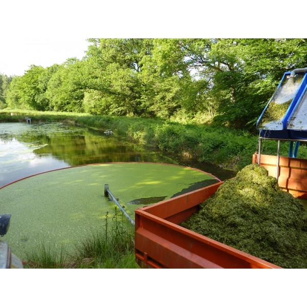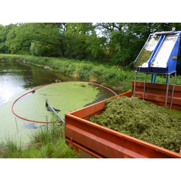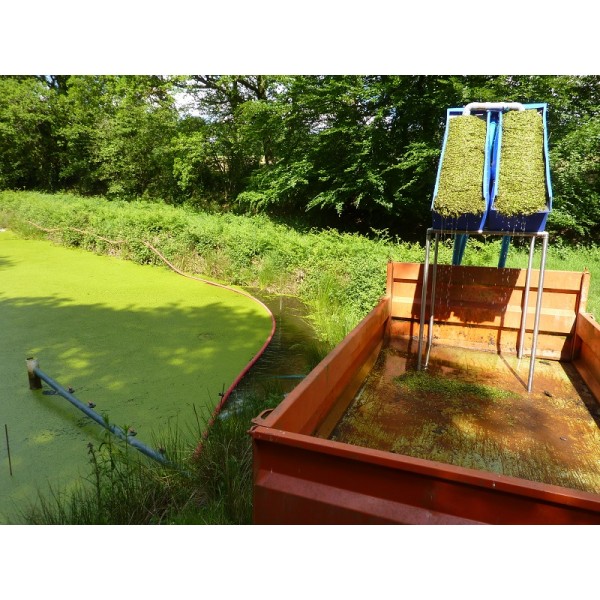 En option le SKIMFILTER MAX (1 ou 2 filtres selon la qualité de la matière filtrée) et le support big-bag inox, complète la solution, permettant de concentrer les lentilles d'eau filtrées dans une remorque ou une benne, facilement transportable ensuite pour compostage ou méthanisation.