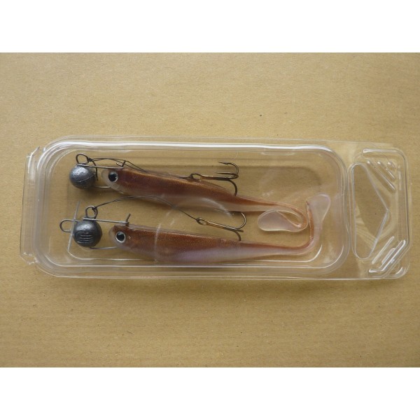 Pack truite ou perche de leurres souples "Fine minnow 80" monté sur 1 godille de 4 g et sur une monture de 4 g. Idéal pour comparer nos montages ou en dépannage si manque de vairons.