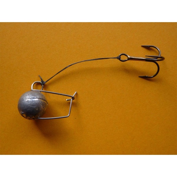 2 Montures plombées de 1,5 g, pour vif de 5/6 cm, s'utilise comme les montures classique mais avec une récupération plus lente ou en pêche verticale, le positionnement du triple limite les accros et optimise le ferrage. Armé d'un triple VMC et d'une empile souple de tresse berkley en 15/100 pour 7,9kg de résistance.