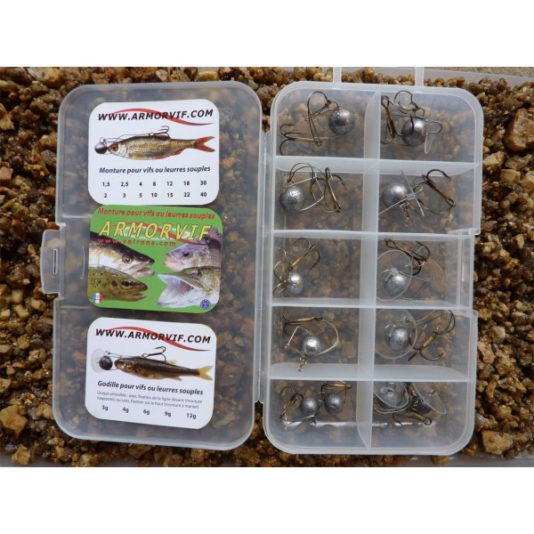 Boite 6 montures (2 X 5 g / 2 X 8 g / 2 X 12 g) et 6 godilles (2X 6 g / 2 X 9 g / 2 X 12 g).