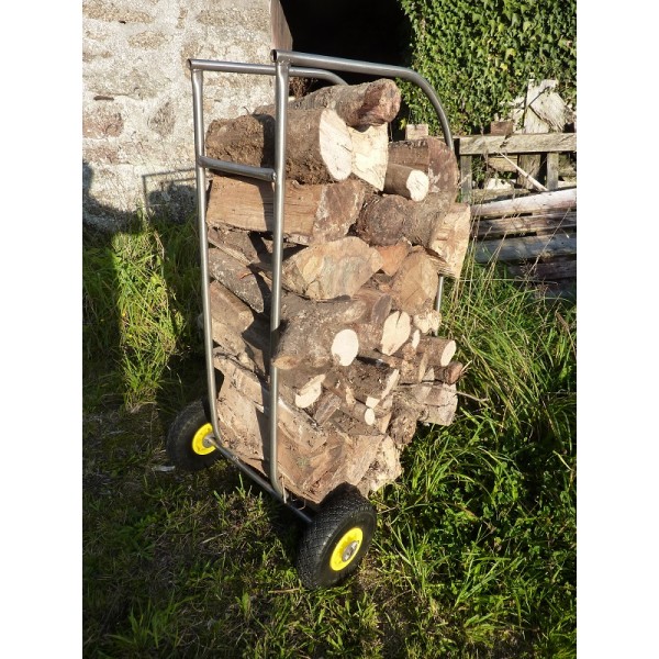 Porte buche ARMOR, au design épuré, tout inox , roues pleines increvable, charge maxi de 150 kg. Pour buche de 40 à 50 cm de long. Hauteur 1.20m, longeur 60 cm, largeur au niveau des roues 70 cm.